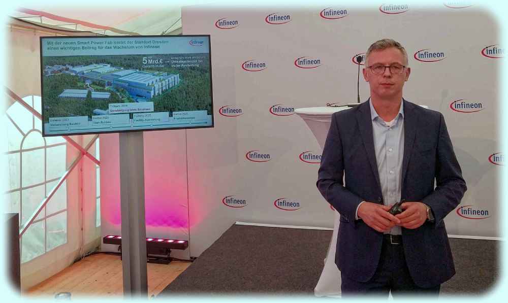 Dresden, 11. Juni 2024. Infineon will neben der 5-Milliarden-Euro-Investition in ein neues, viertes Chipwerk in Dresden zudem weitere 300 Millionen Euro in die Modernisierung seiner Bestandsfabriken gleich nebenan investieren. Das hat Raik Brettschneider, einer der beiden Geschäftsführer von Infineon Dresden, angekündigt.