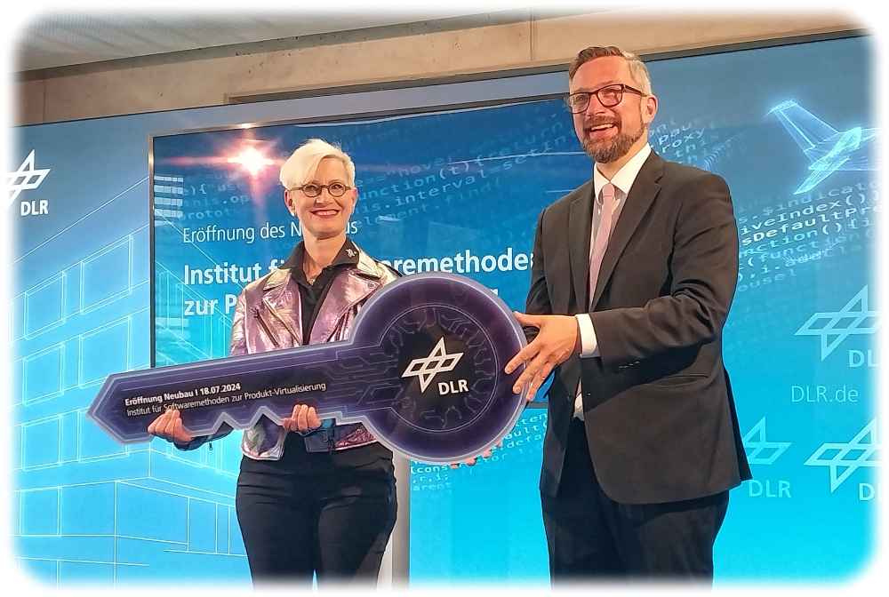 Dresden, 18. Juli 2024. Damit die deutsche und europäische Luftfahrtindustrie bald umweltfreundlichere Flugzeuge bauen kann, die per Strom, Wasserstoff oder Synthese-Kerosin angetrieben werden, programmiert das „Deutsche Zentrum für Luft- und Raumfahrt“ (DLR) in seinem Dresdner „Institut für Softwaremethoden zur Produkt-Virtualisierung“ (DLR-SP) die passende moderne Software für diese Entwicklungsprojekte: Digitale Zwillinge, Simulationen und andere Programme rund um die Flieger der nächsten Generation.