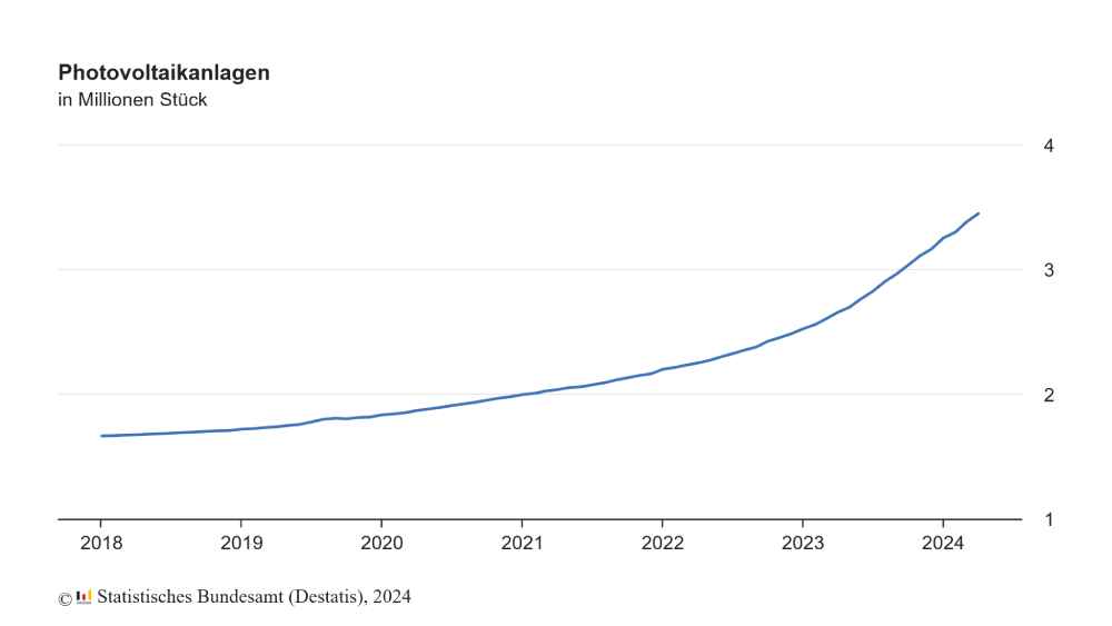Auch die Zahl der installierten Solaranlagen in Deutschland ist stark gestiegen. Grafik: Destatis