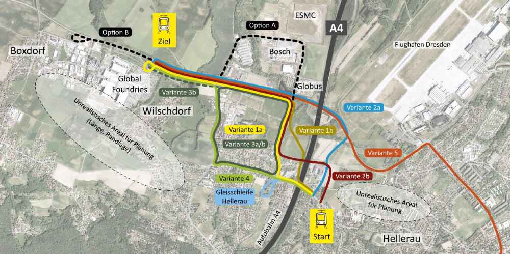 Die Planer von Stadt und Dresdner Verkehrsbetrieben (DVB) untersuchen nun drei verschiedene Varianten für die neue Trassenführung: