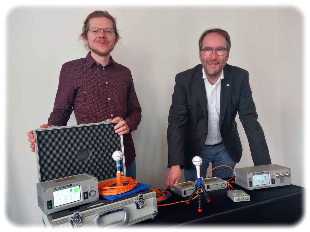 Solche kleinen elektromagnetischen Störenfriede aufzuspüren, war noch vor einigen Jahren sehr schwer: Allein schon die Kupferkabel für die Stromversorgung traditioneller Feld-Sensoren reichte, um die Messergebnisse gnadenlos zu verfälschen. Dann gründete sich „Lumiloop“ aus der Dresdner Uni aus und entwickelte hochpräzise Feldmesssonden, die sich von aller Kupfer-Kabelage befreit hatten und ihren Energiebedarf durch Lichtenergie per Glasfaser deckten.