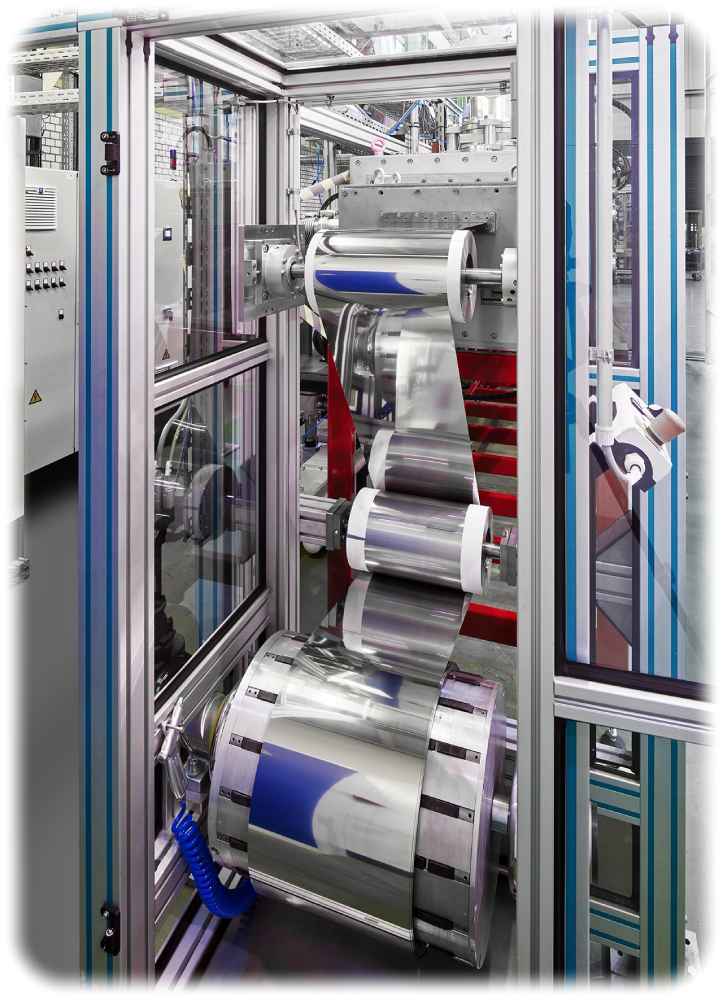 Die modular konzipierte Fertigungslinie soll im Endausbau imstande sein, automatisch Metallfolien in Bipolarplatten zu verwandeln – und die bei einem Tempo von mehreren Metern pro Sekunde. Eine wesentliche Neuerung ist dabei das Rolle-zu-Rolle-Prinzip (R2R): Während die Platten für Brennstoffzellen-Stapel („Stacks“) heute noch meist einzeln bearbeitet werden, zieht in der neuen Fraunhofer-Fertigungskette eine Anlage ein etwa 100 Mikrometer dünnes Metallband im Endlosbetrieb von einer Rolle ab. Danach gelangt die Folie durch speziell dafür entwickelte Luft-Vakuum-Schleusen in luftleere Kammern. Dort scheiden Vakuumverdampfer („Physical Vapor Deposition“, kurz PVD) zuerst eine Korrosionsschutz- und danach eine 100 Nanometer dünne Graphitschicht ab.