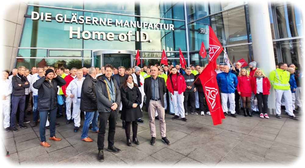 Weniger optimistisch sehen das die Gewerkschafter, die bereits seit geraumer Zeit mehr konkrete Ansagen fordern: „Nach der Rede von Thomas Schäfer haben wir heute mehr Fragen als Antworten“, kritisiert der Dresdner IG-Metall-Bevollmächtigte Stefan Ehly nach einer „sehr emotionalen“ Betriebsversammlung in der Manufaktur. „Die anhaltende Ungewissheit stimmt angesichts des Jahresendes viele Beschäftigte wütend.“ Betriebsratsvorsitzender Thomas Aehlig hat konkrete Forderungen: „Uns wurde eine Fortführung als Standort der VW AG zugesagt, und zwar mit einer klar definierten Zahl an Beschäftigten. Die Montage von Autos ist das Herz der Gläsernen Manufaktur. Dieses Herz muss ab 2026 durch mindestens genauso solide Geschäftsfelder von Volkswagen ersetzt werden.“
