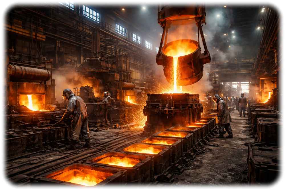 Eisengießerei. Visualisierung: KI ChatGPT, Prompt: Heiko Weckbrodt
